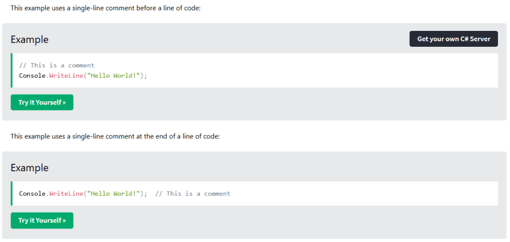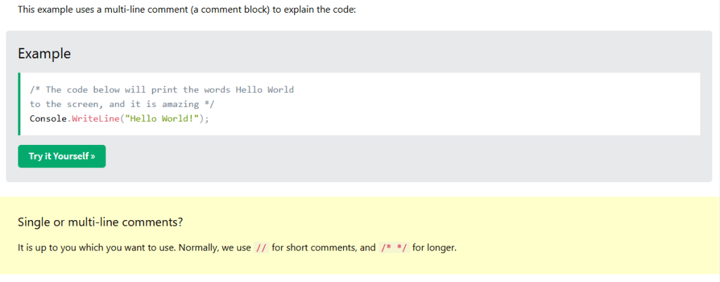 Comments can be used to explain C# code, and to make it more readable. It can also be used to prevent execution when testing alternative code.