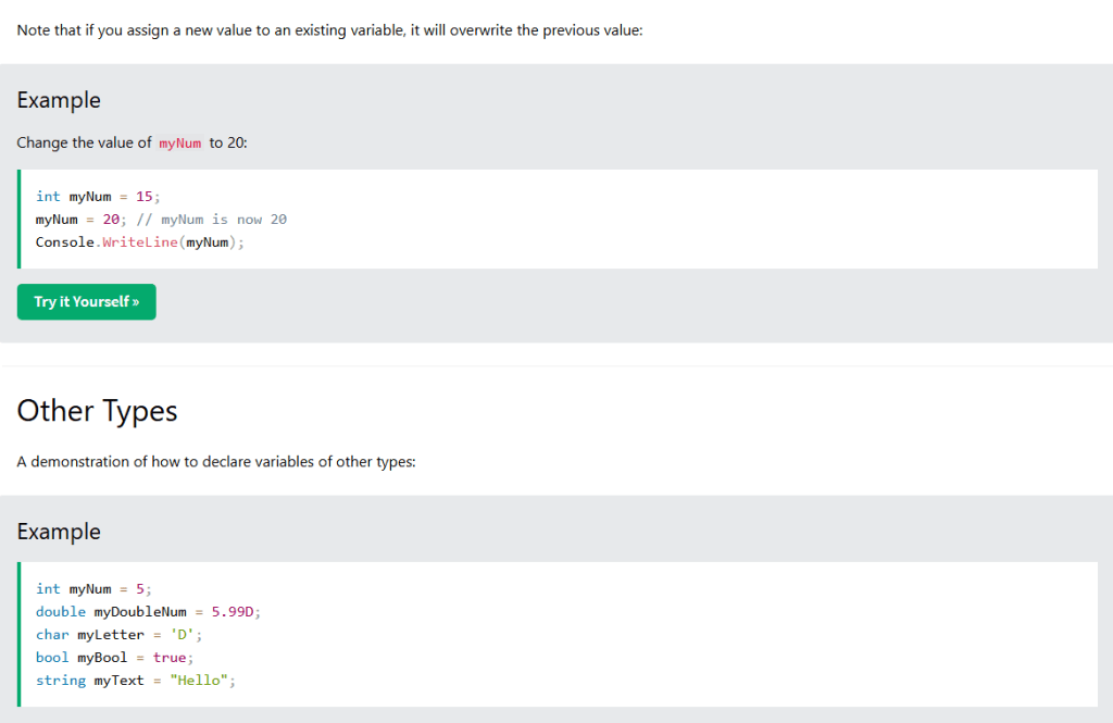 As explained in the variables chapter, a variable in C# must be a specified data type: