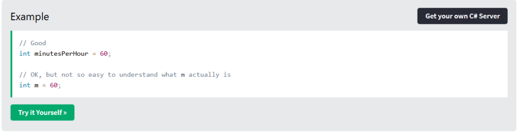 Note: It is recommended to use descriptive names in order to create understandable and maintainable code:
