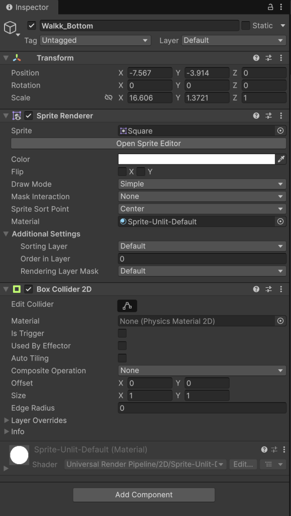 - We can flip the sprite in Unity (no Photoshop needed) to reuse it for Walk Left.